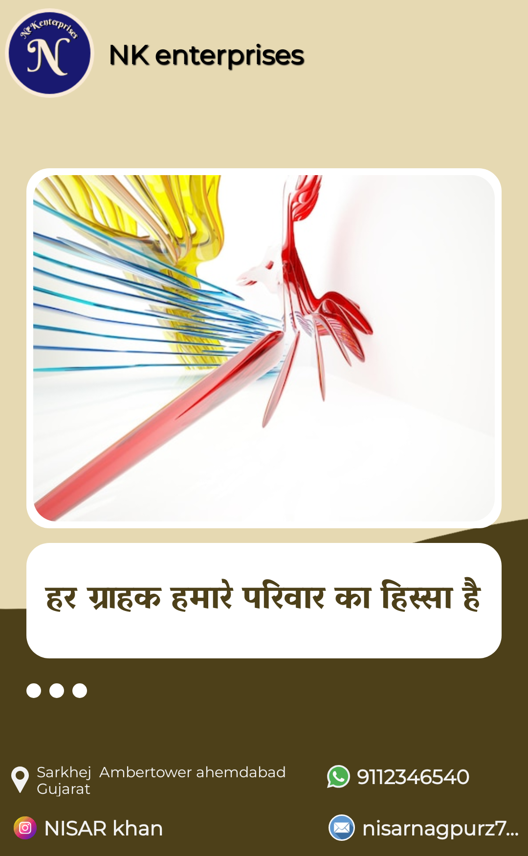 NK Electrical Enterprises – Your Trusted Electrical Solutions Partner in Sarkhej, Ahmedabad At NK Electrical Enterprises, we specialize in providing reliable and professional electrical products and services for homes, offices, and industries. Based in Sarkhej, Ahmedabad, we are known for our quality workmanship, timely service, and affordable solutions. From wiring, fittings, electrical repair, and installation to supplying high-quality electrical goods, our team ensures safety, durability, and customer satisfaction. Whether you need small household fixes or large-scale commercial electrical work, NK Electrical Enterprises is your one-stop solution. ✅ Professional Service ✅ Affordable Pricing ✅ Quality Products & Fittings ✅ On-Time Work